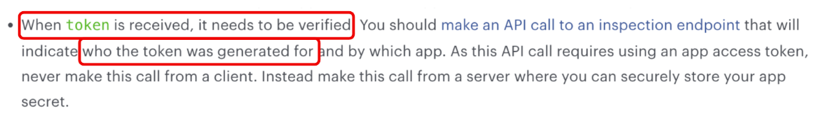 In other words, the first thing you need to do as a developer, before making an API request to Facebook to receive the identity, is to verify the access token. Otherwise, your implementation is not secure.