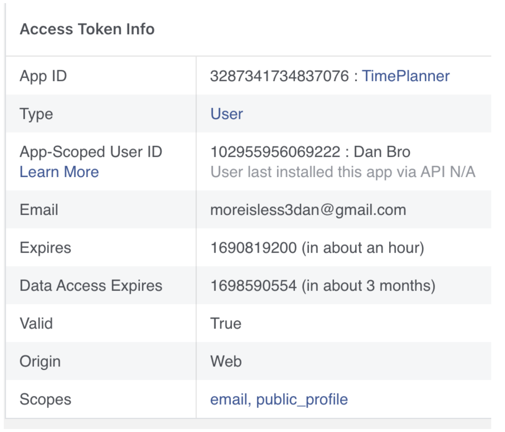 This token represents Dan Bro (moreisless3dan@gmail.com) and was generated to TimePlanner (App ID 3287341734837076).