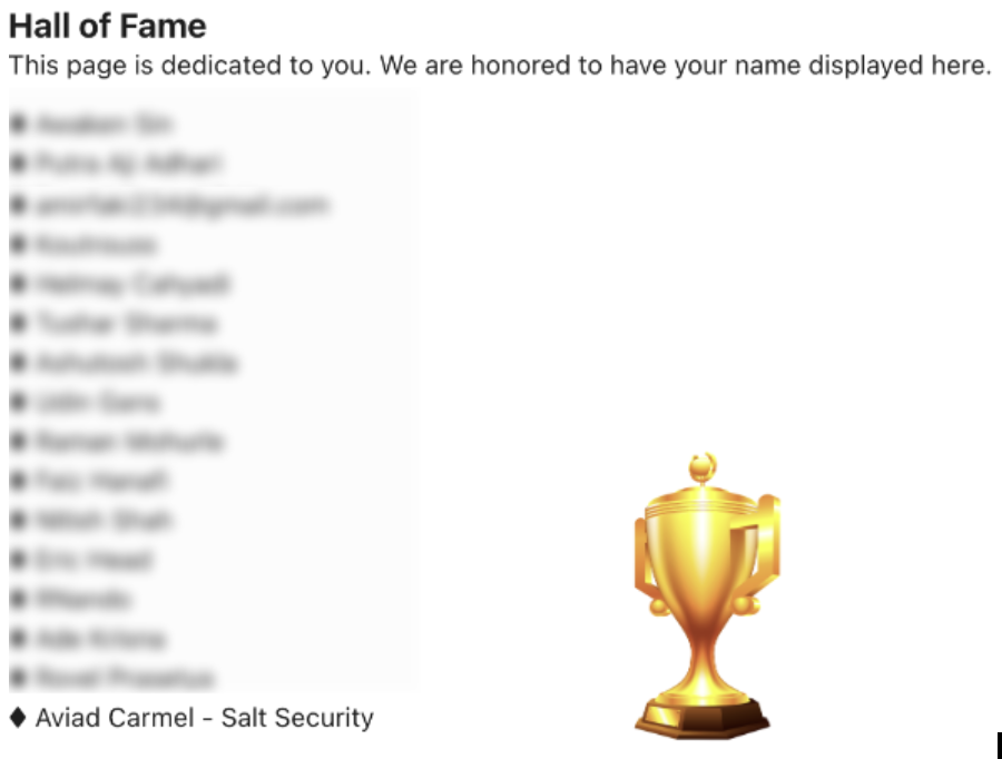 When we found this vulnerability, Vidio fixed it immediately and added Salt Security to its Hall of Fame: